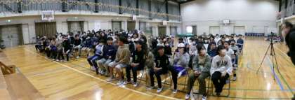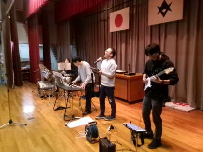 3月15日(金)第5・6校時体育館で、6年生が「6年まとめの会」をしていました。写真は、先生たちによるMONGOL800「小さな恋の歌」の歌と演奏の様子です。アンコールもあり大変盛り上がっていました。