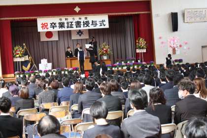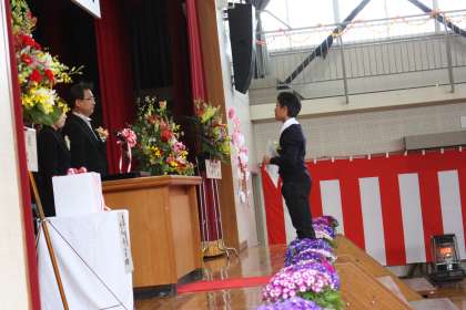 卒業証書授与です。今年は、証書を授与された後、これからの抱負を壇上で述べてから降壇しました。