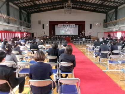 卒業生が退場し、感動の卒業式が終わりました。続いて最後の学級活動ですが、保護者の方々には、体育館で思い出のビデオを見ていただきながら待っていただきました。