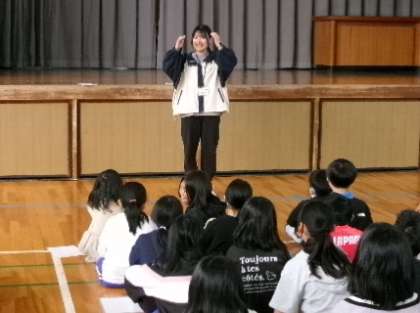 4月12日(金)第1校時体育館で5年生が、進級して初めての学年集会を行いました。はじめに、各担任による自己紹介とパフォーマンスがあり、拍手や手拍子などがあり大変盛り上がっていました。
