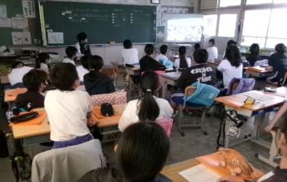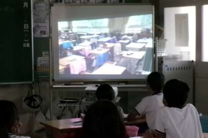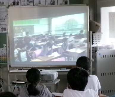 5年生が先日の避難訓練時に撮影したビデオで振り返りをしていました。机の下にもぐったときには机の脚をもつとよいなど、細かな点まで振り返り、より一層防災への意識を高めていました。