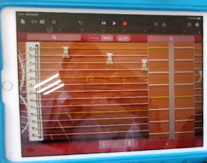 第2校時4年生が教室で、琴の学習をしていました。タブレットで練習できて、本物も、つめをはめて引けるんですね。