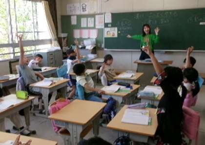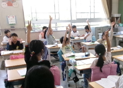 第2校時4年生が、机を向かい合わせにして道徳の授業をしていました。おへそを向けて話を聞き、肘をぴんぴんに伸ばして手を挙げていて素晴らしいです。