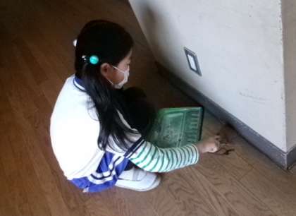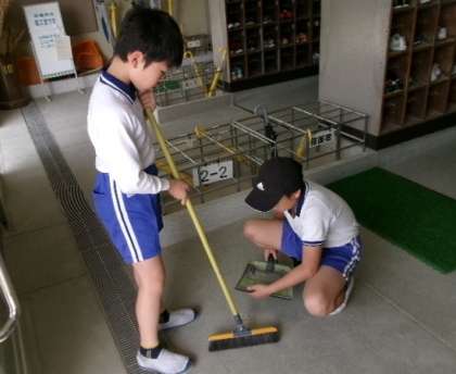 4月26日(金)朝8時20分ごろ、環境委員が昇降口の朝清掃をしていました。砂が結構たくさん上がってきていますね。いつもありがとうございます。