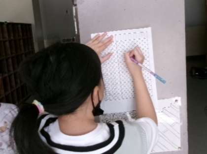5年生の整頓係が、靴の整頓をチェックしてくれています。そのおかげで5年生はいつもきれいに靴の整頓ができているんですね。