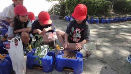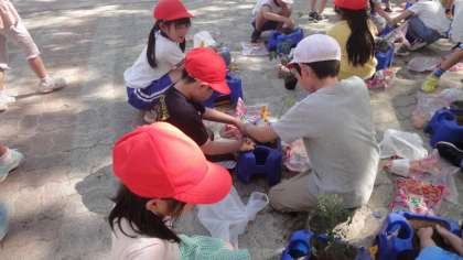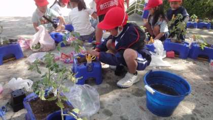 2年生がミニトマトを育て始めました。おいしいミニトマトが、たくさん実るといいですね。