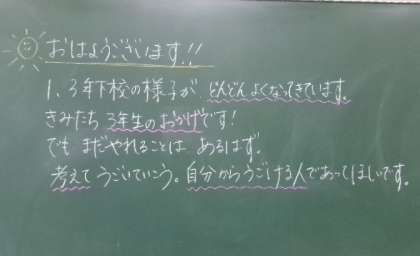 黒板メッセージ2です。前向きな言葉がいいですね。