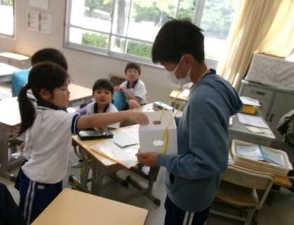 5月14日(火)朝の会で福祉委員が募金とアルミ缶を集め、今年度第1回目の盲導犬募金運動「ワンワンデー」を行いました。アルミ缶は10袋も集まりました。明日も「ワンワンデー」2日目があります。ご協力をよろしくお願いします。