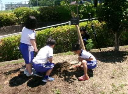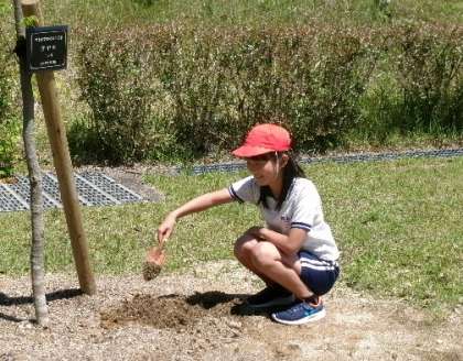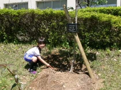 40周年記念空撮に続いて、3本の木の植樹会を行いました。1本目は正門前にソメイヨシノを、2本目は鉄棒前斜面にハナノキを、3本目は、運動場北西にケヤキを植樹しました。思い出に残るといいですね。