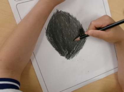 1年生「あさがおのかんさつ たねをじっくりみよう」です。じっくりよく見て、大きくかけましたね。