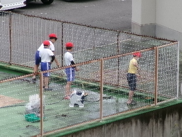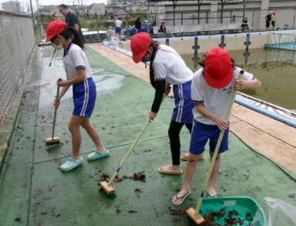 6年生がプール清掃をしてくれました。みんながプールに入れるのは、6年生のお陰です。本当に助かりますね。
