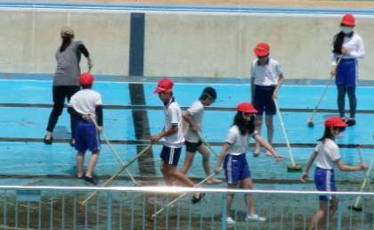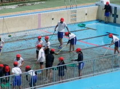 6年プール清掃