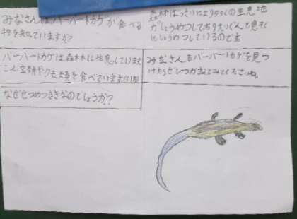 4年生が動物の紹介リーフレットを作っていました。バーバートカゲは知りませんでした。