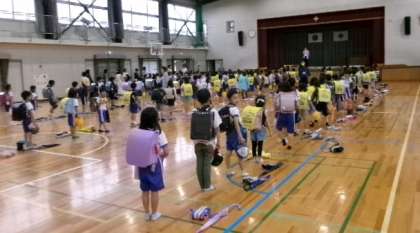 5月28日(火)悪天候のため、体育館で雨降り下校を実施しました。1・2年下校も3〜6年下校も、短時間に集合し、時間通りに安全に下校することができました。