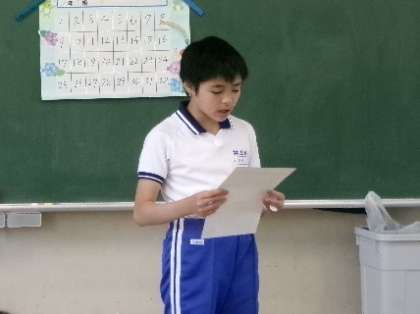 朝の会で図書委員が各教室を訪問し、6月3日からの「てるてる坊主」読書週間の説明をしていました。学校全体で読書に親しむ雰囲気づくりをしていきましょうね。