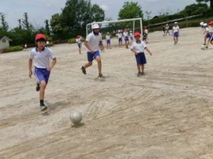 ふれあいタイムにたくさんの子がサッカーをしていました。サッカーが大好きですね。グランドが荒れてて、ごめんなさいね。