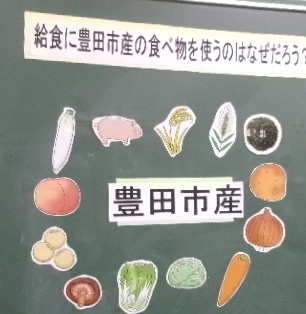 外部から1名に講師をお招きし、4年生が食育の出前授業を受けました。給食に豊田市産の食べ物を使うのはなぜだろう?