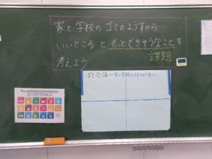 4年生「ゴミ会議ー家と学校のごみの様子ー」の授業です。SDGsの学習ですね。自分たちにできることは何?