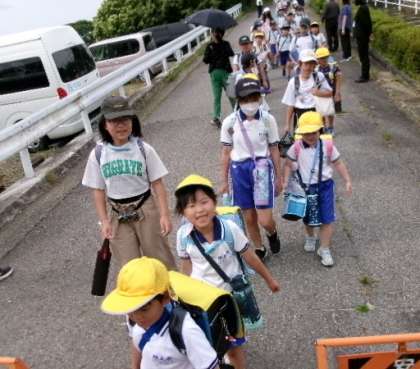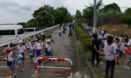 西門付近の下校の様子です。みんなしっかり挨拶してくれています。