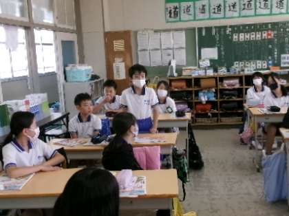 5年生の朝の会です。係からの連絡や日直の司会、それを聞く人の態度も、さすが高学年です。
