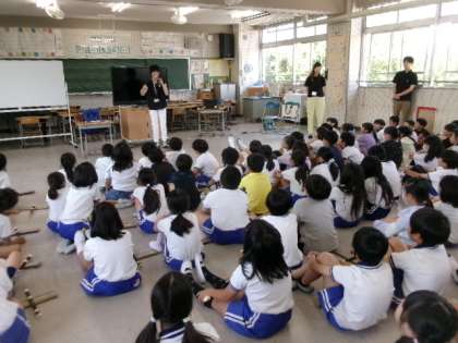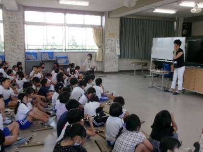 3年生が外部から2名の講師をお招きし、音楽室でリコーダーの講習会を受けました。やさしく吹いてね。