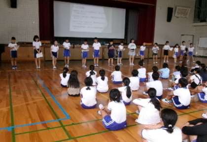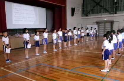 朝5年生が、キャンプに向けて学年集会をしていました。自分たちの力でつくりあげていきましょうね。