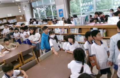 6月18日(火)ふれあいタイムの図書室の様子です。特に雨の日は大混雑しますね。