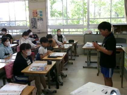 6年生が、週末の過ごし方を英語で紹介していました。いろんなジェスチャーがでて、盛り上がっていましたね。