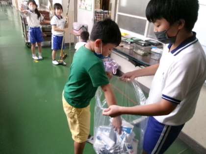 給食委員会が牛乳パックを給食後、各クラスを回って集めてくれています。毎日ありがとうございます。