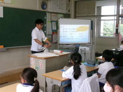 第3〜6校時、大学や市役所の方々を講師にお招きして、5年生が防災出前授業を行いました。