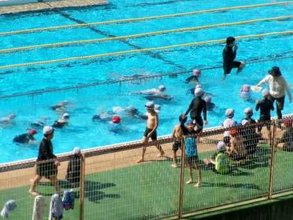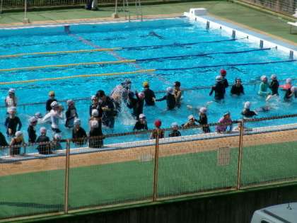 3年生の水泳の様子です。水の中にしっかり頭を入れて、潜ることができましたね。