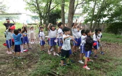 2年生はふれあいの森で撮影しました。できあがりがとても楽しみですね。