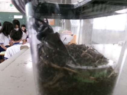 立派なカブトムシを持ってきている子がいました。家の畑から出てきたんだそうです。井上小学区は自然豊かですね。