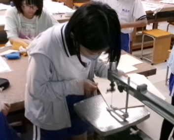 5年生が図工室で糸鋸を使って作品づくりをしていました。何ができるのかな?怪我なく安全に使ってくださいね。