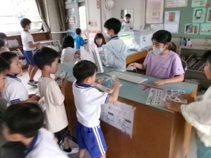 図書室の様子です。とても混み合っていました。係の子が延長して貸し出していましたが、借りられなかった子はいませんでしたか?