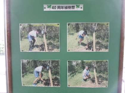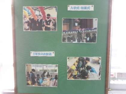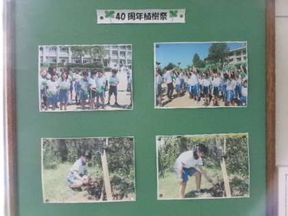 3階廊下には、記念植樹と入学式の写真が掲示されています。