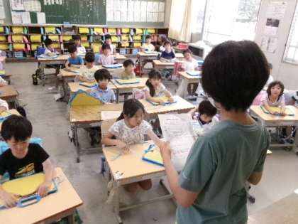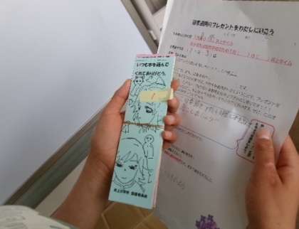あじさい読書週間が終わり、目標達成のご褒美に図書委員会自作のしおりがプレゼントされまていました。これからも、たくさん本を読みましょうね。