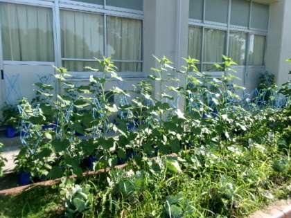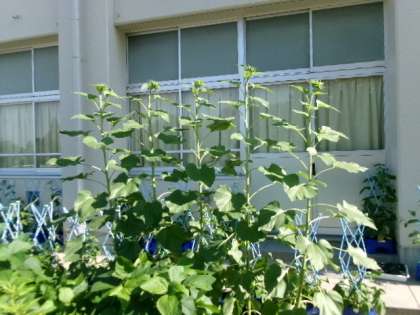 1年生教室前花壇のヒマワリです。もう咲いた?もうすぐ咲く?のかな?