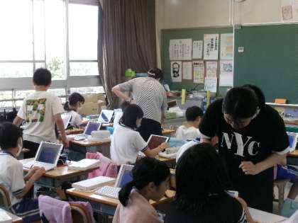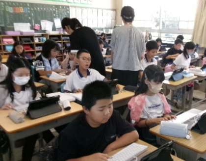 ICT支援員さんが2年生と5年生の巡回指導に来てくれました。簡単なゲームも作れるんですね。