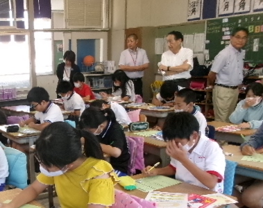 7月5日(金)午前中、区長さんをはじめとする地域の方を招いて、第1回学校運営協議会を実施しました。どの児童も集中して話をきいていたことをほめていただきました。