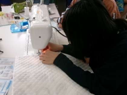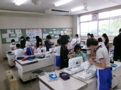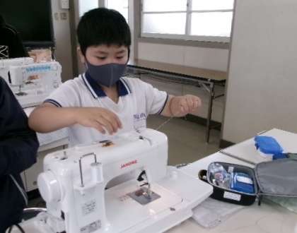 6年生が家庭科室でミシンを使って、ナップザックを作っていました。丈夫なナップザックができるといいですね