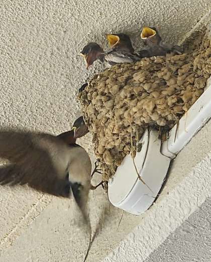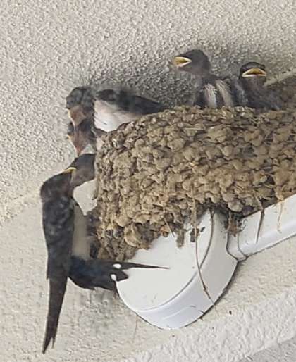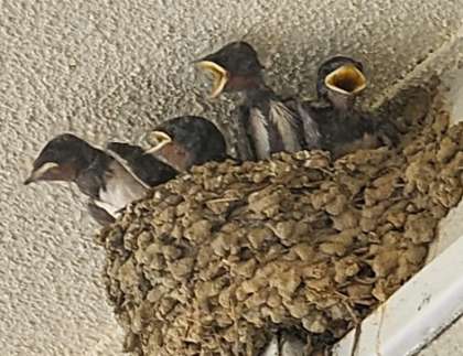 玄関前のツバメが育ってきました。何匹いるのかな?