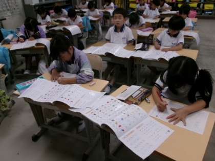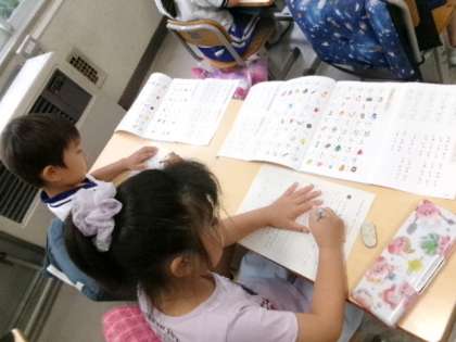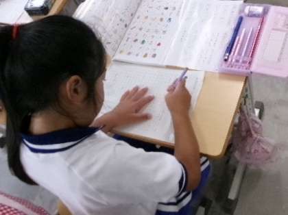 1年生がカタカナの学習をしていました。「ツ」と「シ」とか、むずかしいけどがんばってくださいね。