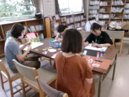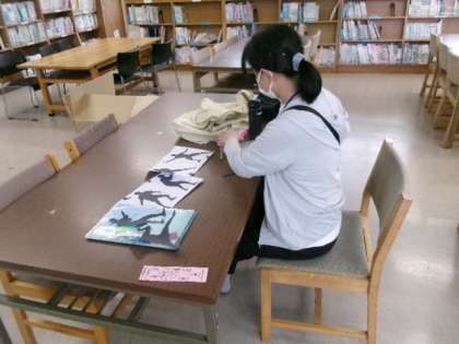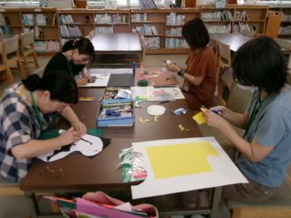 毎週火曜日の午前中にボランティアの皆さんが来校し、図書室の掲示物づくりをしてくれています。もう秋の掲示づくりなんですね。出来上がりを楽しみにしています。