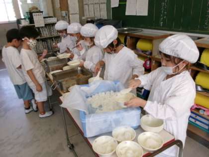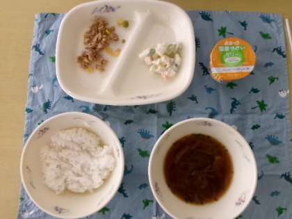 今日の給食は防災の日献立で、じゃがいもと大豆のサラダ・ツナそぼろ丼の具・備蓄用味噌汁・ご飯・牛乳・野菜ゼリーでした。久しぶりの給食は、いつも通りおいしかったですね。