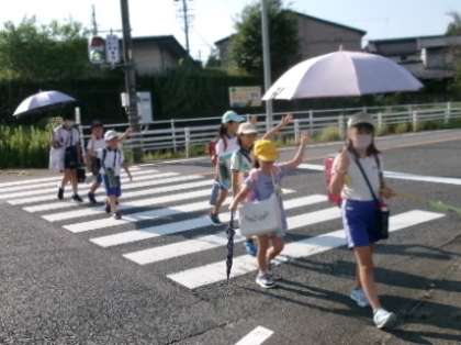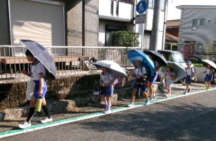 9月3日(火)の登校の様子です。日差しがきついので、傘さし登下校も続けます。