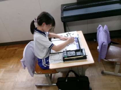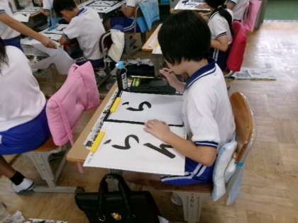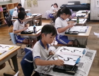 4年生の習字です。「らん」字の形が難しそうですが、集中して頑張っていますね。