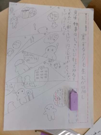 4年生がオリジナルのことわざ(故事成語)カードを作っていました。絵や漫画があると、とても分かりやすいし楽しいですね。