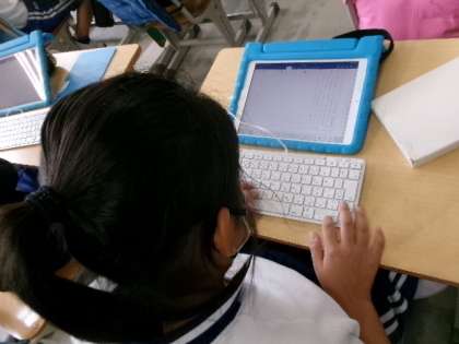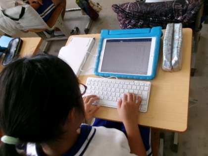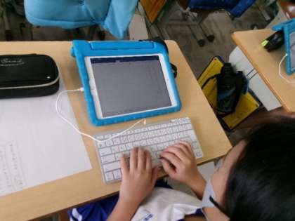 4年生がお世話になった地域の方へのお礼の手紙を書いていました。タブレットを使って原稿用紙の様式で、縦書きで書けるんですね。