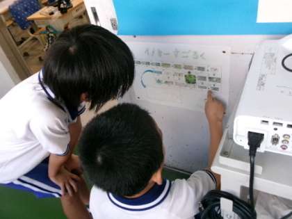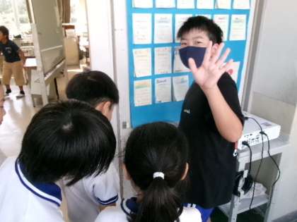 月・水・金曜日の朝、企画委員が各教室を回り、「レベル5のあいさつでイノミーをゴールさせよう」の活動をしています。このクラスは5点満点がとれたようですね。